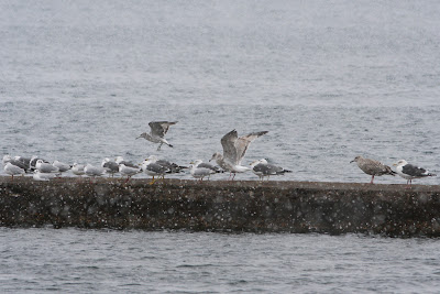 It's the coldest day with the heaviest snow fall I've ever seen in Beppu. The Spa Beach has completely gone white and I had so much fun taking photos of the Black-headed Gulls which I'll be uploading later. There were quite many big gulls around the beach also and I was a bit surprised to see that many of them were actually Slaty-backed. Most of the birds were adult with only 1 first year juvenile. This winter seems to be different; I didn't see any last season.