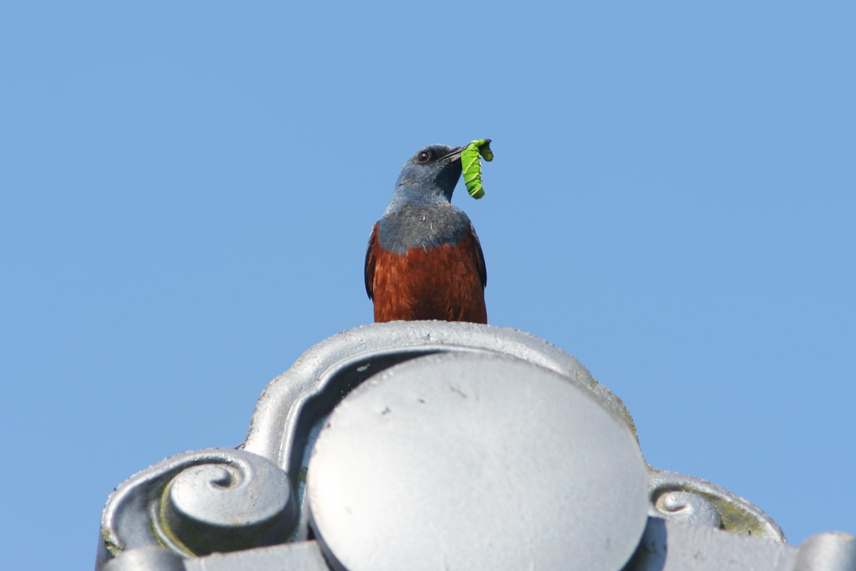 I found this family of Blue Rock Thrush (Monticola solitarius) at Furui-chi last Saturday. At first I found one fledgling hopping on the ground then followed by its mom. I later found 2 more fledglings flying and perching around all over the area. The male bird was the one that mainly brought food back for the youngs. Two chicks seemed to be male birds because they already had some bluish feathers on their wings and tails. Subspecies M.s.philippensis is the main subspecies in Japan. Unlike other subspecies, male bird of M.s.philippensis has bright chestnut belly and undertail coverts. It's a common species which can be found year-round around here.